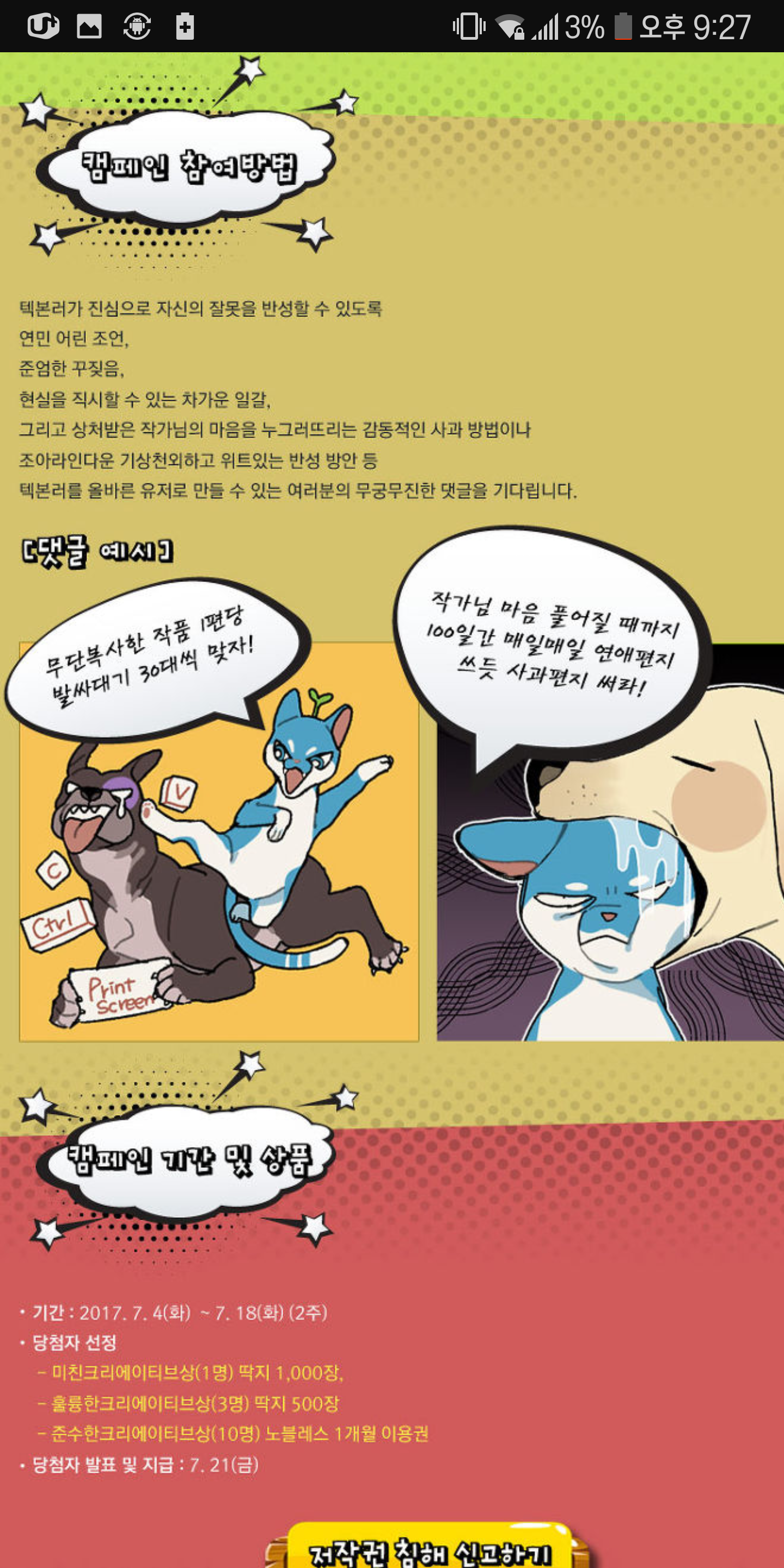 3. 당연히 텍본이 줄어들리가 없고... 그러자 조아라는 불법텍본러들 어떻게 신박하게 혼내주면 좋을까요? 하는 이벤트를 열음;;;