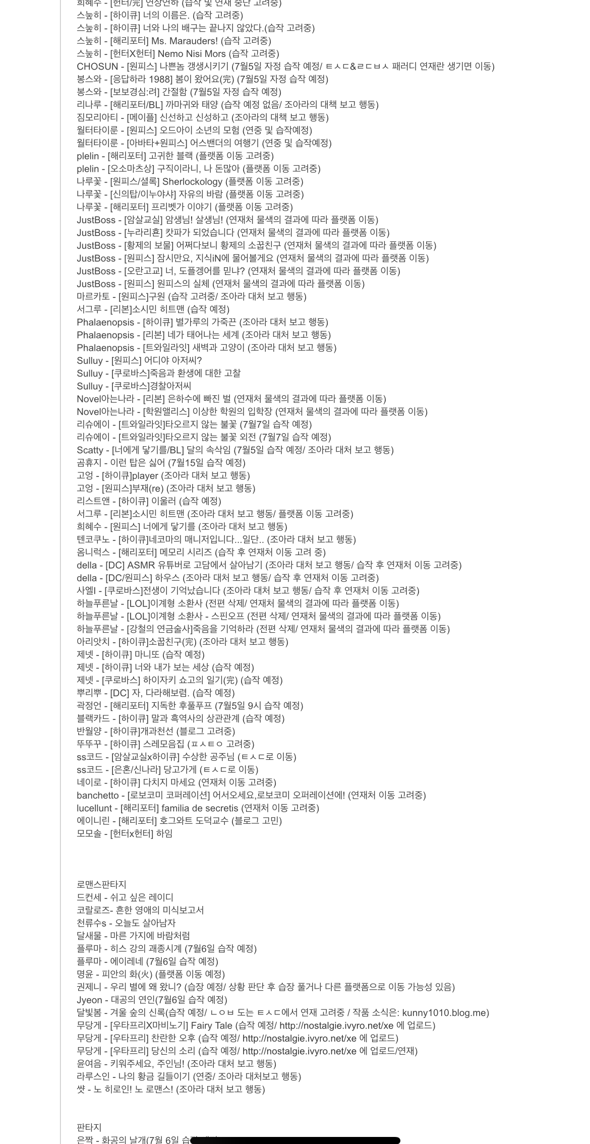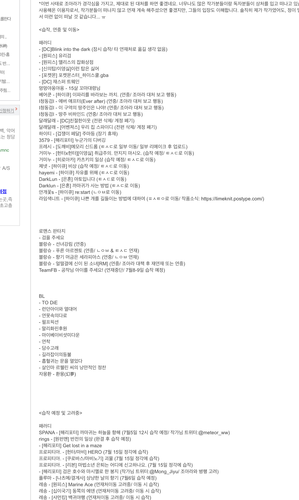 작가들 대거 연재중단+연재처이동 등등....