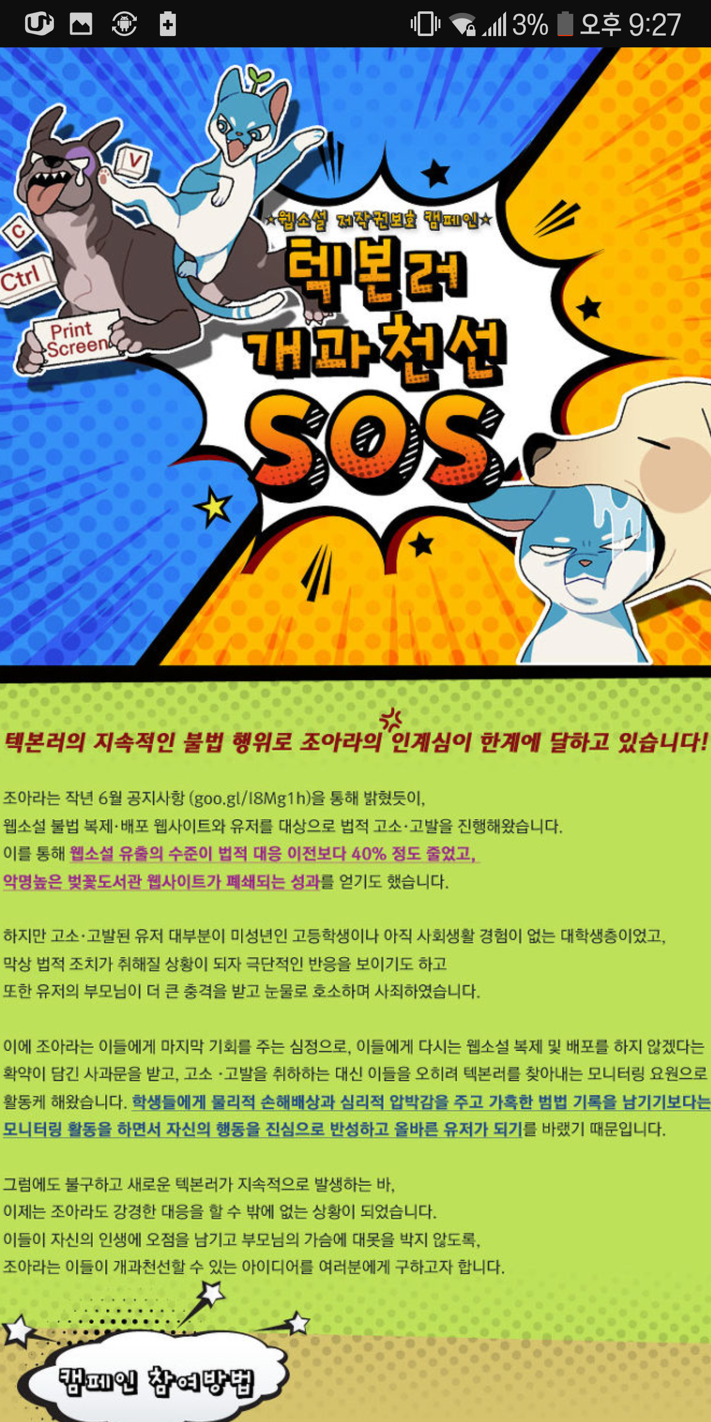 1. 그동안 조아라 작가들은 작품 불법유출 불법공유하는 텍본러들 때문에 꾸준히 조아라에 문의를 해왔음