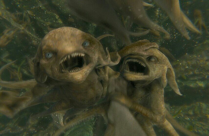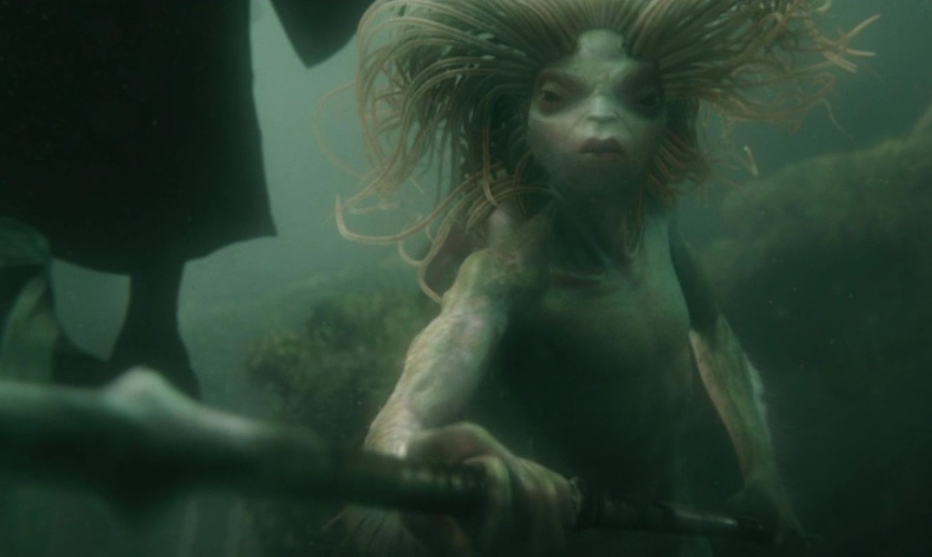 "인어들은 회색 피부에 어두운 초록색 머리카락을 길게 산발하고 있었다. 눈은 노란색이었고, 그건 듬성듬성한 이빨도 마찬가지였다. 그들은 목둘레에 자갈을 꿴 두꺼운 줄을 두르고 있었다."