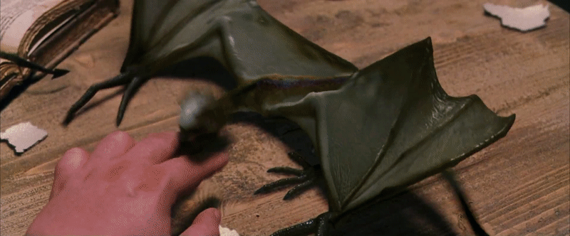"딱히 귀엽다고는 할 수 없었다. 해리는 그게 꼭 잔뜩 구겨진 검은색 우산 같다고 생각했다. 깡마르고 석탄처럼 검은 몸에 비하면 가시 돋친 날개가 너무 컸다. 주둥이의 콧구멍은 너무 넓었고, 뿔은 아직 덜 자라 뭉툭했으며, 주황색 눈은 툭 불거져 있었다."