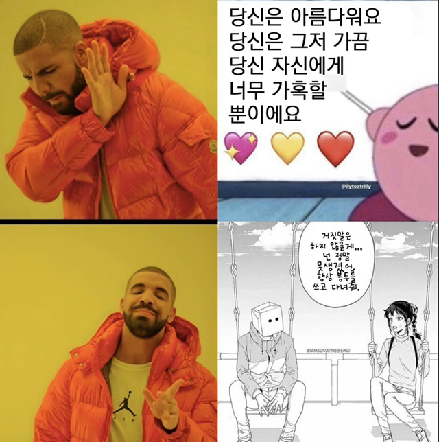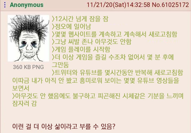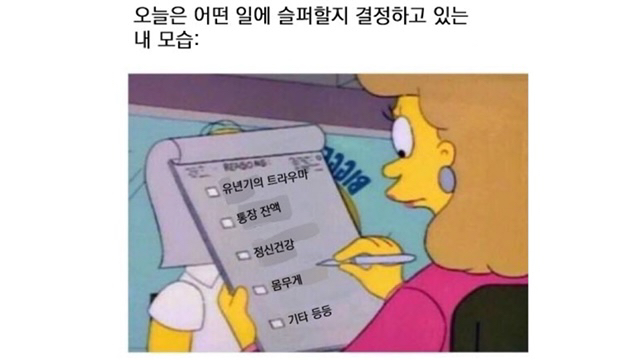 [흥미돋]우울증/자기혐오/자살사고 밈 모음.jpg 작성자안녕히 주무세요 메르엠|작성시간21.01.08|조회수29,922 목록 댓글 30 글자크기 작게가 글자크기 크게가 출처 : 트위터 @ourdepressedass제목에 우울증 자기혐오 자살사고 밈이라고 떡하니 써놨으니 자기가 위험군이라고 생각되면 알아서 피하셈 이거 보고 더 우울해졌다는 태클 안받음 다음검색 현재 게시글 추가 기능 열기 북마크 공유하기 신고 센터로 신고 댓글 댓글 30 댓글쓰기 답글쓰기 댓글 리스트 작성자xanaxaa | 작성시간 21.01.08 나네... 작성자안녕히계세키 | 작성시간 21.01.08 대박....하나도 빠짐없이 정확함 ㅋㅋㅋㅋㅋ개웃곀ㅋㅋㅋㅋㅋㅋㅋㅋ 작성자3빼기1은 | 작성시간 21.01.08 이거보고 울면 답도없는 우울증인가 ㅎㅎ.. ㅠㅠㅋㅋ.. 작성자상큼체리 | 작성시간 21.02.03 ㅠㅠ아 작성자르퐌쟐 | 작성시간 21.06.01 저내요 댓글 전체보기