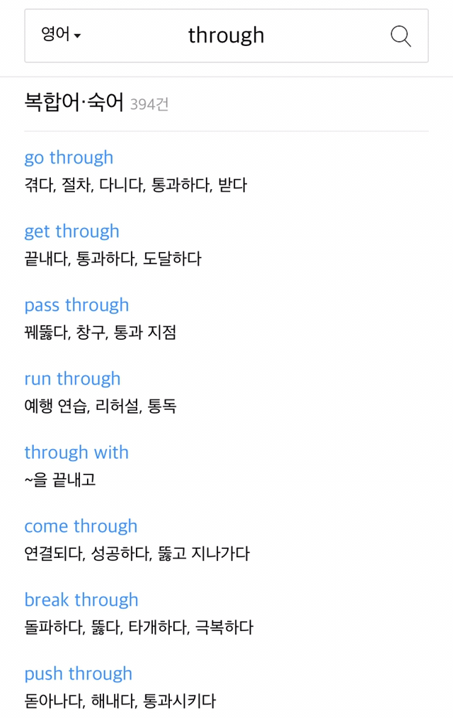 ‘통과하다’는 뜻이 있는 제일 위 go through도