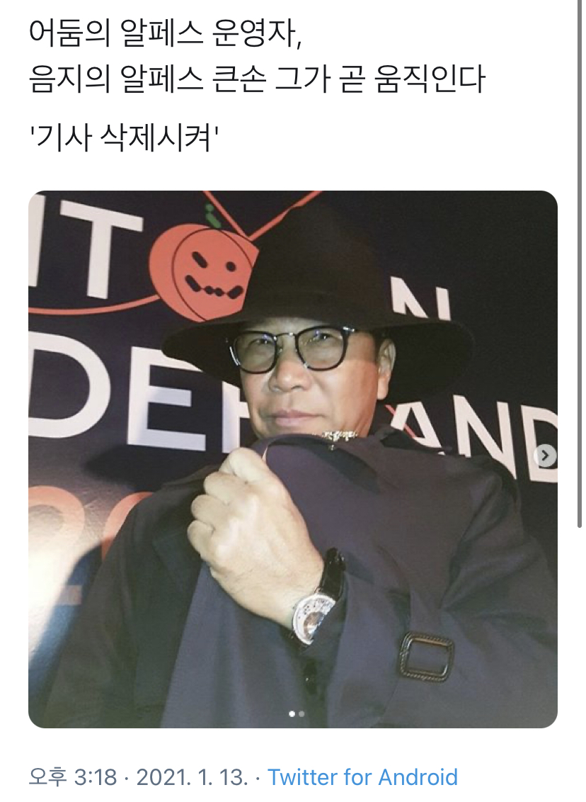 [스크랩] [배꼽의행방]어둠의 알페스 운영자.. “기사 삭제 시켜” 작성자쩌리왕|작성시간21.01.15|조회수8,065 목록 댓글 14 글자크기 작게가 글자크기 크게가 출처 : https://twitter.com/rhombus_080219/status/1349239344578510848?s=21사다리꼴1 on Twitter“어둠의 알페스 운영자, 음지의 알페스 큰손 그가 곧 움직인다 '기사 삭제시켜'”twitter.com이수만 전적“팬픽 공모전” ㅋㅋㅋㅋㅋㅋ 다음검색 스크랩 원문 : *여성시대* 차분한 20대들의 알흠다운 공간 현재 게시글 추가 기능 열기 북마크 공유하기 신고 센터로 신고 댓글 댓글 14 댓글쓰기 답글쓰기 댓글 리스트 작성자넷블닉스 | 작성시간 21.01.15 존나웃곀ㅋㅋㅋㅋㅋㅋㅋㅋㅋㅋㅋㅋㅋㅋㅋㅋㅋㅋㅋㅋㅌㅋㅌ 삭제된 댓글입니다. 답댓글 작성자7434615443 | 작성시간 21.01.15 아 그래서 인터뷰 같은거 할때 커플링인 애들 같이 세우구나 이제알았어..! 작성자개맨원투 | 작성시간 21.01.15 아스발ㅋㅋㅋㅋㅋㅋㅋㅋㅋㅋㅋㅋ 작성자828579 | 작성시간 21.01.15 아 진짜 개웃기다 ㅅ미치게ㅛ어 댓글 전체보기