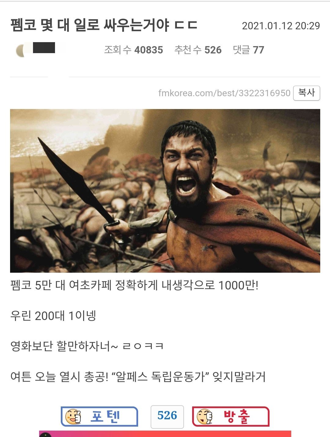 [기타]알페스 총공으로 세상비장한 펨코 찐따들 모음ㅋㅋㅋㅋㅋ.fmkorea 작성자표고방울다이어리|작성시간21.01.16|조회수9,470 목록 댓글 81 글자크기 작게가 글자크기 크게가 출처 : 에펨코리아/여성시대 표고방울다이어리 ???ㅋ???ㅋㅋㅋㅋ?? 다음검색 현재 게시글 추가 기능 열기 북마크 공유하기 신고 센터로 신고 댓글 댓글 81 댓글쓰기 답글쓰기 댓글 리스트 작성자좆본멸망기원 | 작성시간 21.01.17 자의식과잉 개오져 작성자miu miu | 작성시간 21.01.17 ?????ㅋㅋㅋㅋㅋㅋㅋㅋ 작성자@보영 | 작성시간 21.01.17 아니 니들이 왜,,, 니들은 등장도 안하잖아 뭐임 ㅋ 작성자Ballet Rose | 작성시간 21.01.17 진짜 개찐따같다ㅎㅎ 작성자포풍 | 작성시간 21.01.24 저걸 보니 한국의 미래가 암울하다... 댓글 전체보기