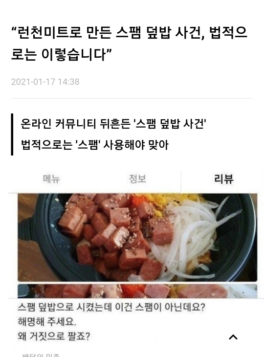 작성자주먹뺩 작성시간 21.01.18 햄덮밥이라고 했으면 고객도 안 시켰겠지 ㅡㅡ 어디서 구라를