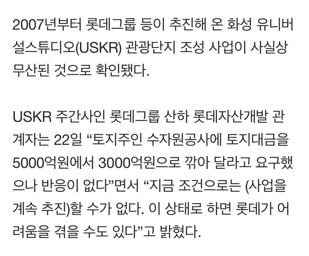 건설사 롯데가 오천억부지 이천억깎아달라고함