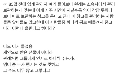 작성자ㄱㅈㅃ 작성시간 21.01.19 미쳤냐 진짜 저걸 왜 몰래 팔아? (직원한테 하는 말)