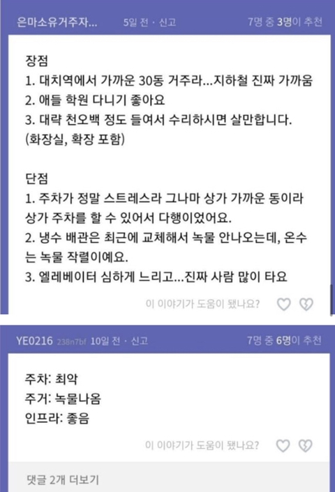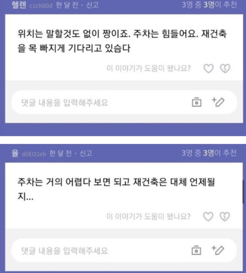작성자나의라잉오렌지나무 작성시간 21.01.20 지인이 여기사는데 주차가 진짜 헬이라고 하더라.. 주차공간 없어서 그런지 방문자 주차도 야박하다고 들었음ㅜ
