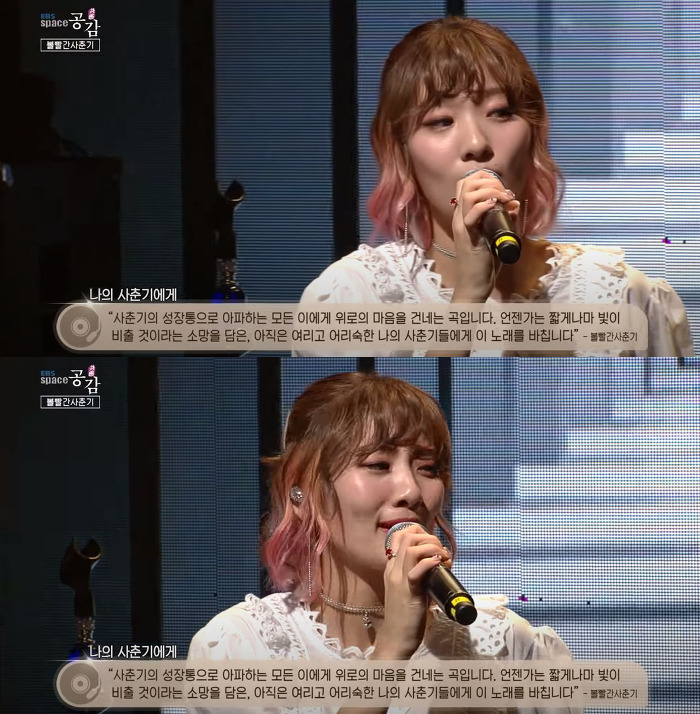 노래가 끝났는데도 내내 고개 못 들고 울고있음....ㅜ