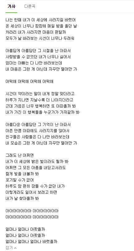 가사만 봐도 정말 눈물나고 위로되는 노래..ㅠㅠ