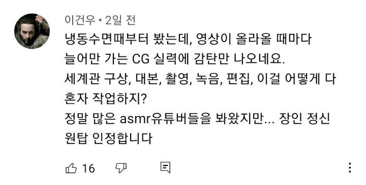 그 중에 컨셉 독보적이고 고퀄인데 안 유명한 ASMR이 있어서 소개시켜주고 싶어서 가지고 왔어.