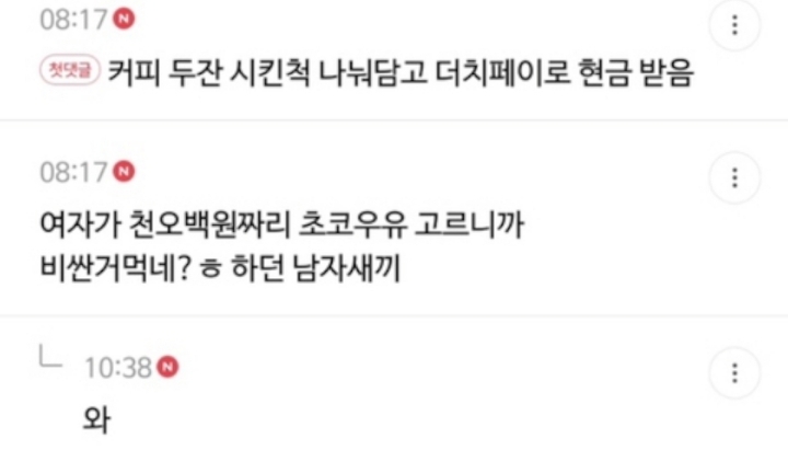 내가 본 건 쌍쌍바 500원짜리 각각250원씩 더치한거 시벌