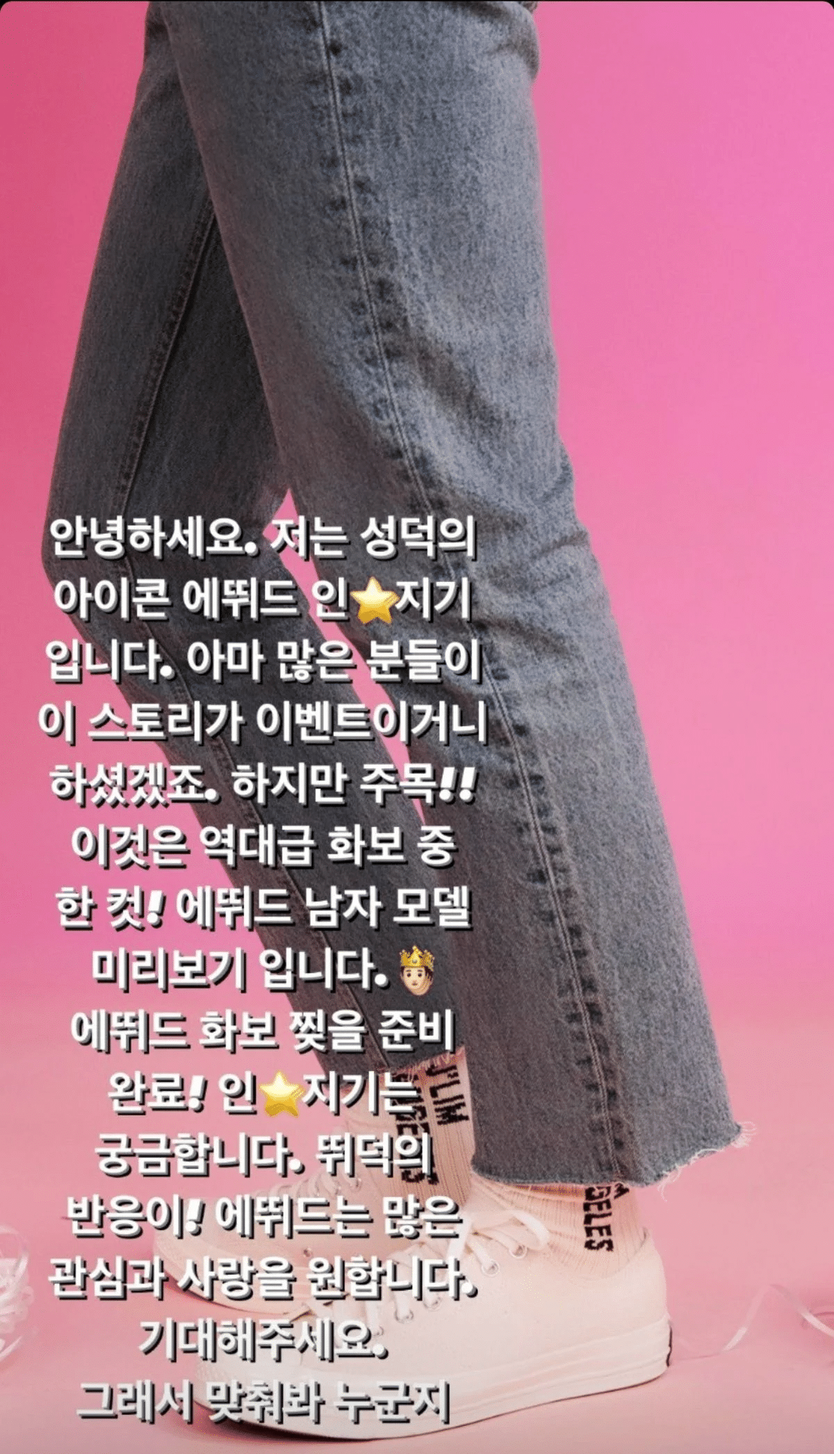 [흥미돋]에뛰드 새 남자모델 미리보기 작성자불암쓰를 좋아하세요??|작성시간21.01.28|조회수15,659 목록 댓글 53 글자크기 작게가 글자크기 크게가 출처 :https://www.instagram.com/etudeofficial/ 다음검색 현재 게시글 추가 기능 열기 북마크 공유하기 신고 센터로 신고 댓글 댓글 53 댓글쓰기 답글쓰기 댓글 리스트 작성자강레나 | 작성시간 21.01.28 오 보민이? 작성자AYARZA | 작성시간 21.01.28 다리 왜저래 짧노 성인이면 디진다 작성자양념쌀알 | 작성시간 21.01.28 다리길이가 동원이 아니면 설명이 안될 길이인데... 작성자Asdsmmr | 작성시간 21.01.28 보민이 다른 화장품 화보도 진짜 예쁘던데 이것도 기대 ㅜㅜ 작성자햐피펄슨 | 작성시간 21.01.28 종아리 길이만 봐도 키작남인거 알겠다... 댓글 전체보기