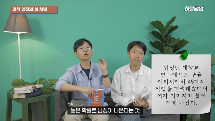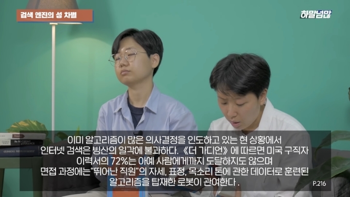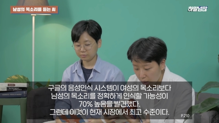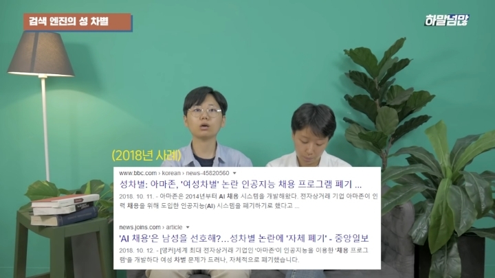 AI가 인식하고있는 대부분의 인간이 남성이기 때문에 여성은 그 데이터에 부합하지 않음 그래서 AI가 관여하는 서류심사나 면접에서 여자가 불리할 수 있기 때문임