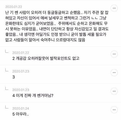 [스크랩] [흥미돋]진짜 기 쎈 사람 특징 ㅇㄱㄹㅇ.jpg 작성자다들그렇게산다|작성시간21.02.04|조회수21,301 목록 댓글 46 글자크기 작게가 글자크기 크게가 다음검색 스크랩 원문 : 쭉빵카페 현재 게시글 추가 기능 열기 북마크 공유하기 신고 센터로 신고 댓글 댓글 46 댓글쓰기 답글쓰기 댓글 리스트 작성자고로나거져 | 작성시간 21.02.04 오은영박사 딱봐도 개쎄보임...ㄷㄷ 작성자커피더치커피 | 작성시간 21.02.05 대표인물=김연아 작성자만득이곱창 | 작성시간 21.02.05 나도 기 쎈 사람 되고싶다 작성자다시태어나자 | 작성시간 21.02.05 오은영 박사님.. 너무 멋져 ㅠ 작성자초롱롱이 | 작성시간 21.02.05 뭔가 박주호 생각나는데 순해보이는데 존나 쎄보임 댓글 전체보기
