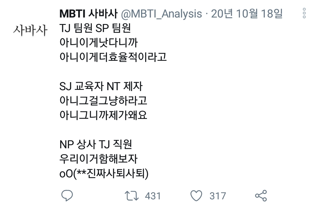 출처 : https://twitter.com/MBTI_Analysis?s=09