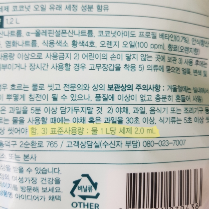 집에 있는 세제 보다가 표준사용량 보고 엥;;; 해서 찾아봄...