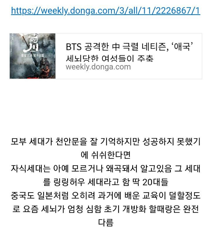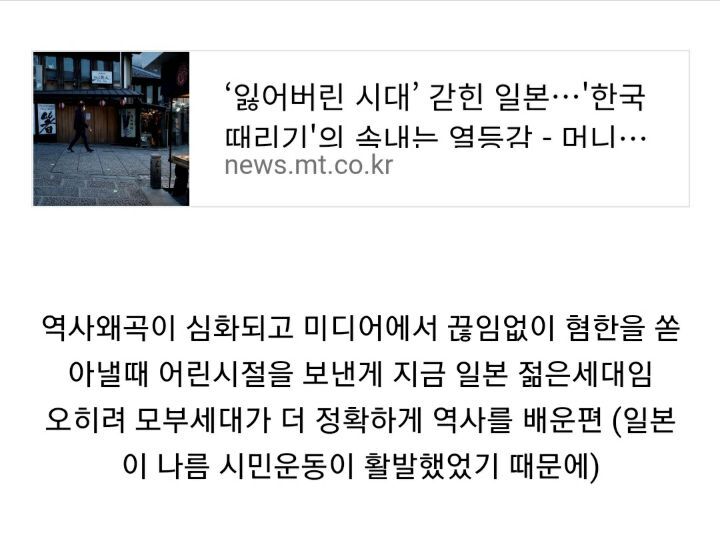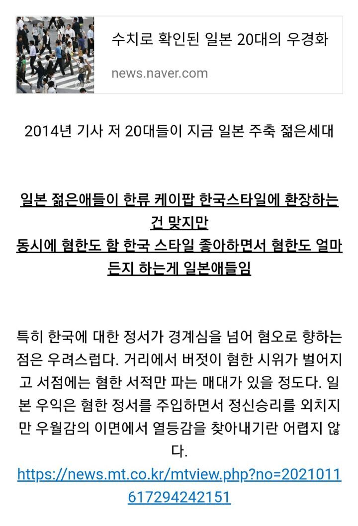 [흥미돋]한국인들이 많이 모르는 사실.jpg 작성자머리가터질거같다|작성시간21.02.07|조회수5,553 목록 댓글 2 글자크기 작게가 글자크기 크게가 출처 : https://m.cafe.daum.net/ok1221/9Zdf/2365187?svc=cafeapp한국 사람들이 중국, 일본 젊은 세대에 대해 정말 잘 모르는것 바로 젊은 세대일수록 더 혐한하고 더 중화사상 심하게 우경화되어있음 주 원인은 교육 대표적인 우경화 정권인 아베 지지율이 20대에서 존나 높은것만봐도 일본의 대학에서 실제m.cafe.daum.net(일본, 중국 젊은 세대) 다음검색 현재 게시글 추가 기능 열기 북마크 공유하기 신고 센터로 신고 댓글 댓글 2 댓글쓰기 답글쓰기 댓글 리스트 작성자vㅅv | 작성시간 21.02.07 우리도 혐일 혐중 교육하자 ㅅㅂ 작성자느개비 요로결석해서 개근상 못받음 | 작성시간 21.02.07 으이구.. 나도 한국은 한 점도 잃을 수 없다, 세계가 한국꺼, 짱꼴라, 쪽바리 죽어버려 운동 해야지~~ 맨날 쳐맞기만해서 억울하노.. 댓글 전체보기