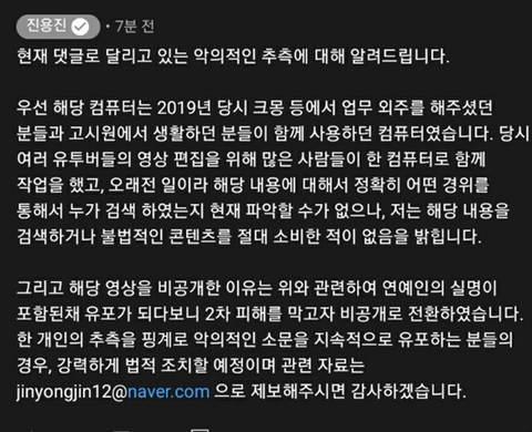 해명은 묻히는 것 같아서 들고왔어!!ㅎ 악의적인 루머를 지속적으로 유포하면 법적조치한대!!