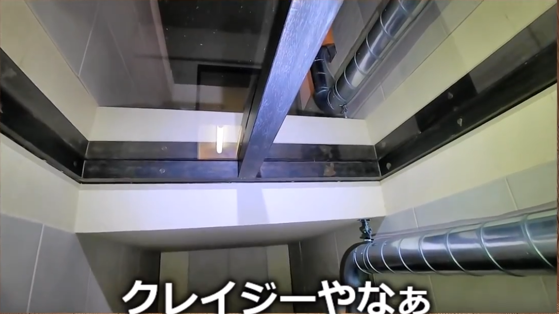 바닥의 수납공간인지 뭔지 알 수 없는 곳에서는 유리창으로 되어 있는 구조야
