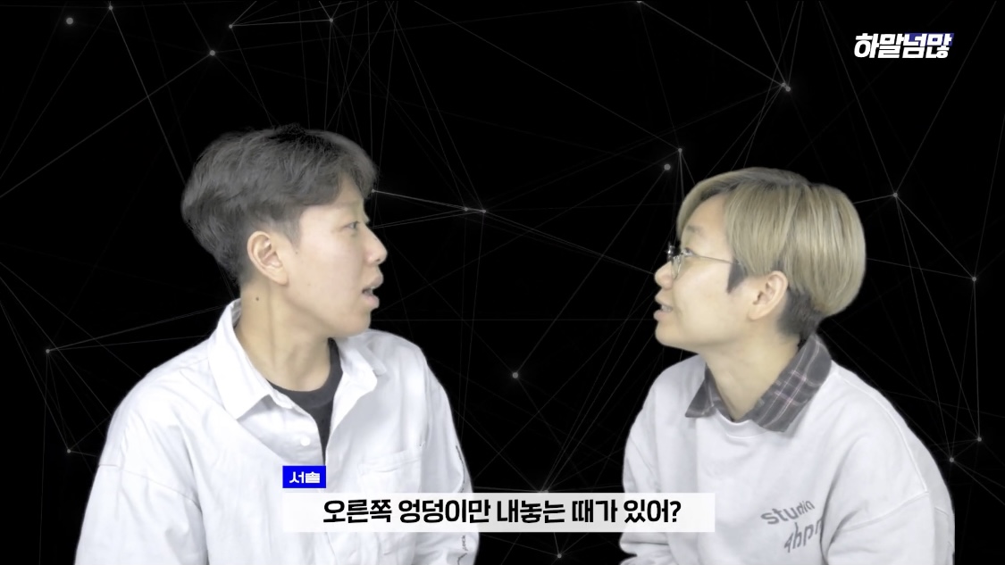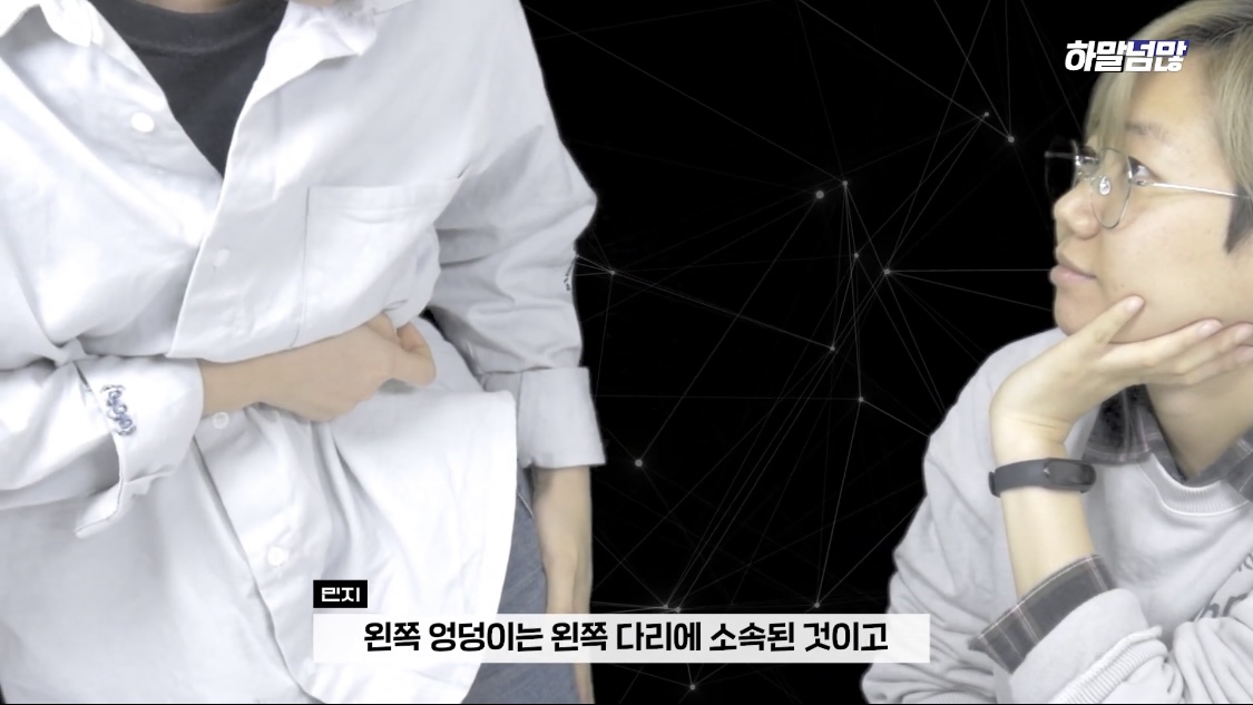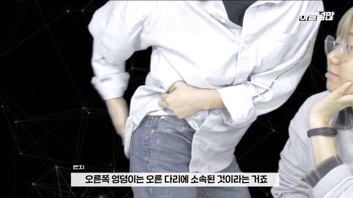둘민지 : 어느 쪽 엉덩이를 움직이고 있는지 보세요