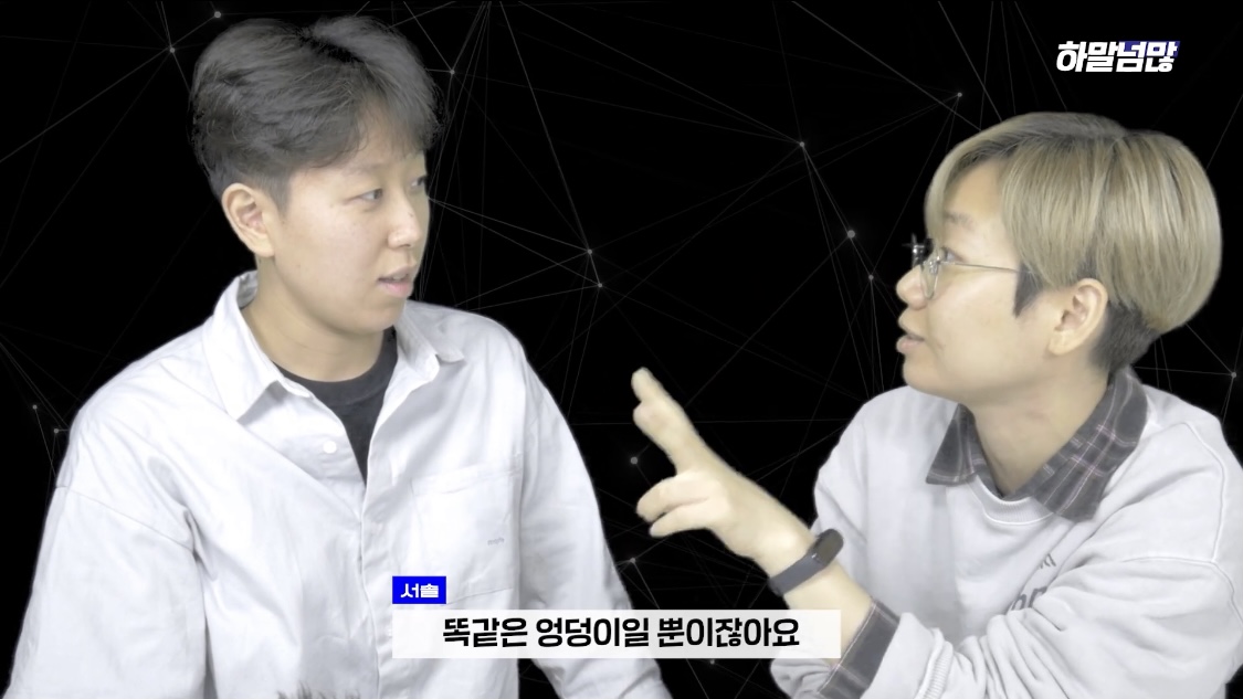 둘민지 : 엉덩이가 한 쪽이라면 어떻게 티팬티라는 게 존재하겠습니까?