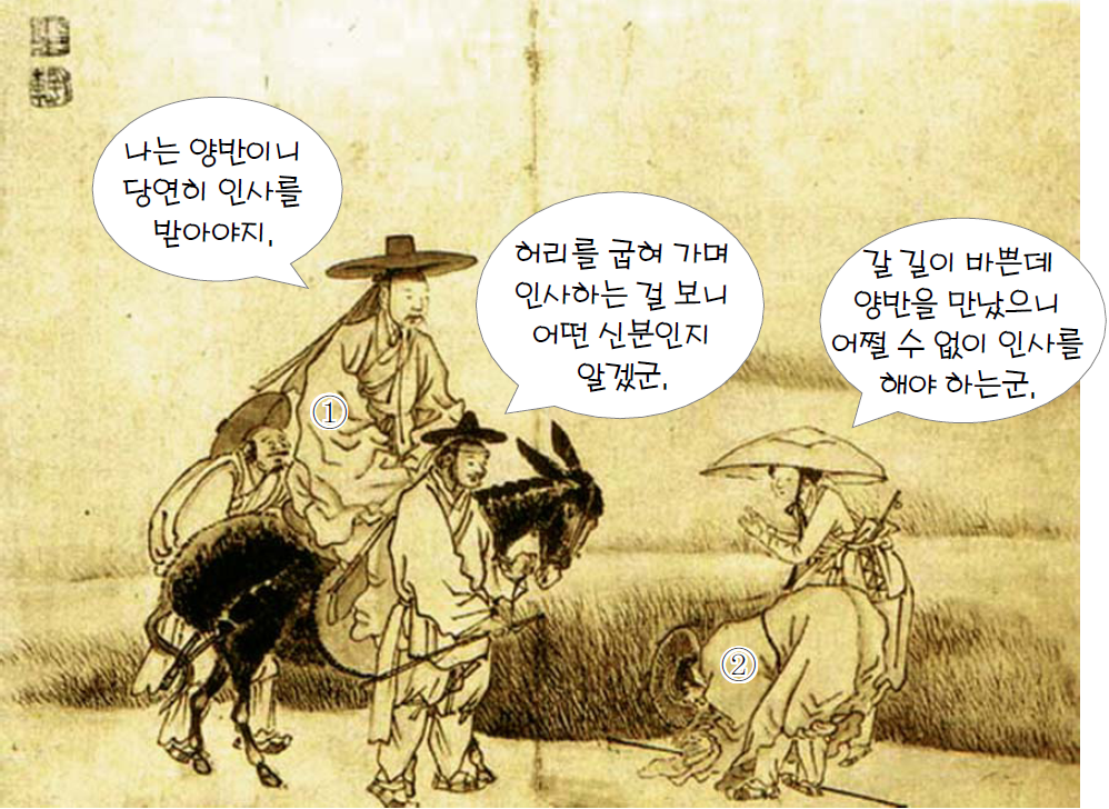 백성들은 말을 탄 양반이 지나다닐 때마다 고개를 숙여야했다.