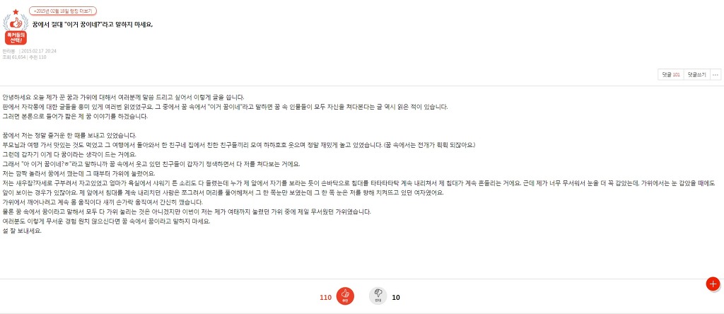 여러분도 이렇게 무서운 경험 원치 않으신다면 꿈 속에서 꿈이라고 말하지 마세요.