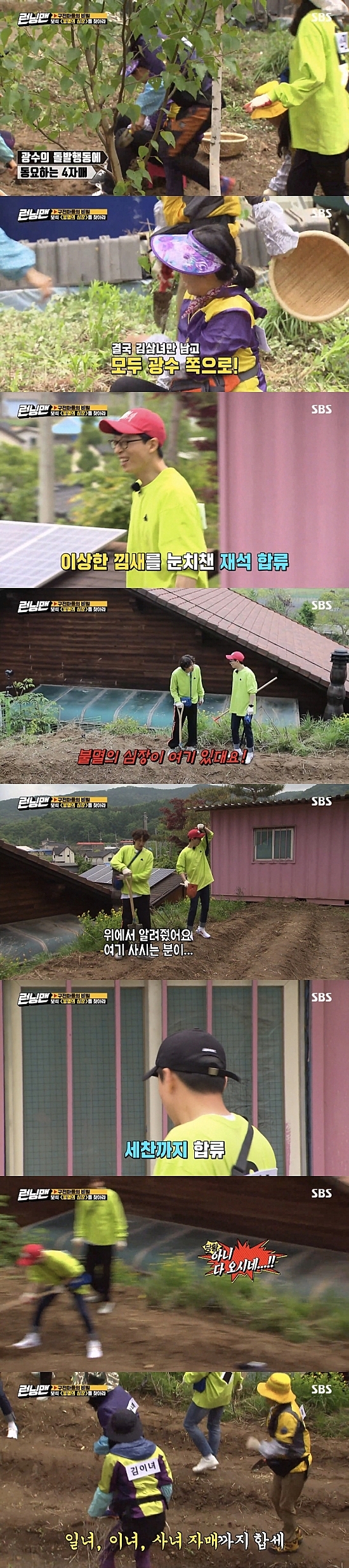 한참동안 의문의 밭을 파던 멤버들