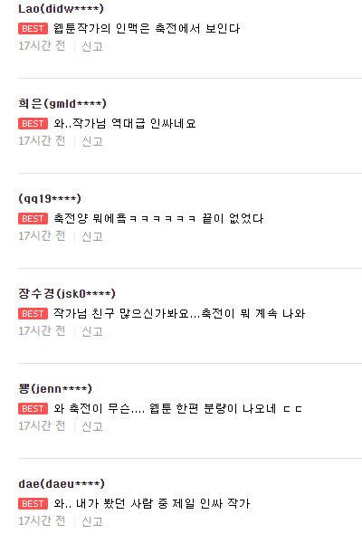 심지어 타 플랫폼 작가들도 축전 그려줌
