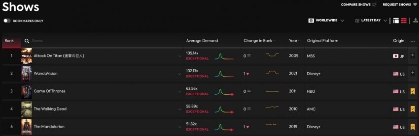 출처 : https://www.parrotanalytics.com/insights/tv-series-demand-across-all-television-platforms-for-the-us-31-january-6-february-2021/