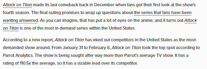 진격이 1위 먹고 해외 아니메 관련 커뮤니티에서 화제가 됨