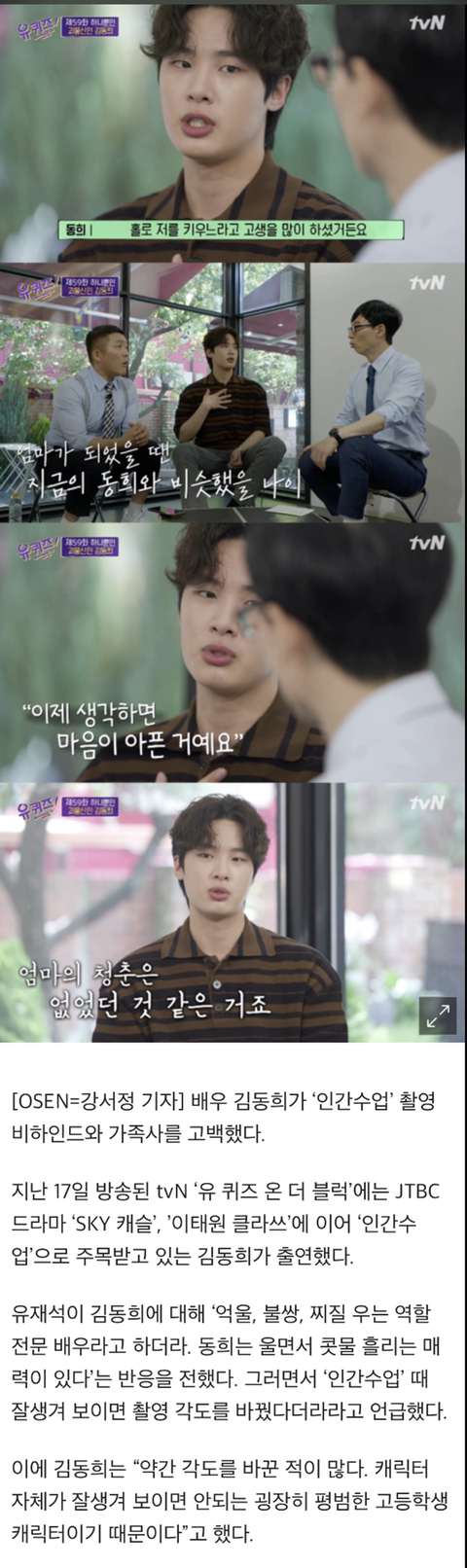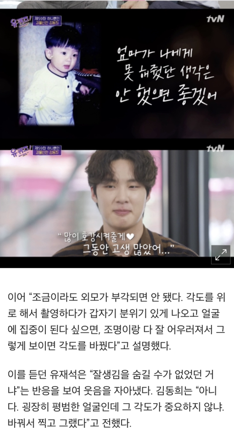 [스크랩] [여시뉴스데스크]'유퀴즈' 김동희 "엄마와 둘이 살아…75년생, 젊은 나이에 날 낳아 고생 많이해"[종합] 작성자문주연|작성시간21.02.22|조회수15,806 목록 댓글 44 글자크기 작게가 글자크기 크게가 출처 : https://m.news.nate.com/view/20200618n05526?sect=ent&list=rank&cate=interest기사 전문 출처 다음검색 스크랩 원문 : *여성시대* 차분한 20대들의 알흠다운 공간 현재 게시글 추가 기능 열기 북마크 공유하기 신고 센터로 신고 댓글 댓글 44 댓글쓰기 답글쓰기 댓글 리스트 작성자감동한 고양이 | 작성시간 21.02.22 느그 엄마가 이렇게 못난 널 보면 어떻게 생각하겠냐 작성자윜밐쓰 | 작성시간 21.02.22 사고치지 말랬더니 이미쳤네... 작성자출근하기실어증 | 작성시간 21.02.23 지금와서 보니 인상 달라보이는게 넘 신기하다 답댓글 작성자구운아몬드으 | 작성시간 21.02.24 와 진짜222222 작성자고마 최선을 다해주이소 | 작성시간 21.02.23 법이 가로막은 댓.. 댓글 전체보기