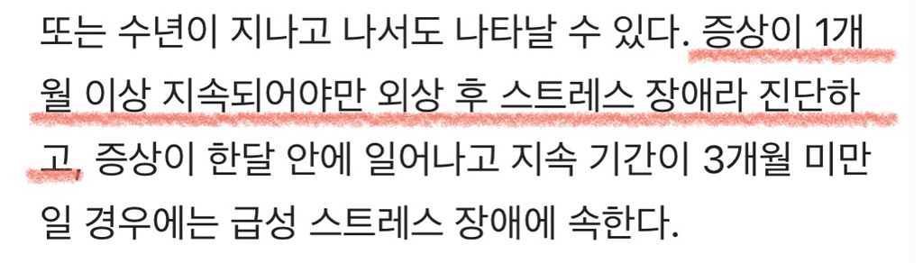 PTSD(Post-traumatic Stress Disorder)는 외상 후 스트레스 장애를 의미하며, 심각한 외상을 겪은 후에 나타나는 불안 장애를 뜻합니다. 외상은 마음에 큰 충격을 주는 경험을 말합니다. 외상의 종류에는 전쟁, 자연재해, 교통사고, 화재, 타인이나 자신을 향한 폭력(성폭력)과 범죄 등이 있을 수 있습니다.