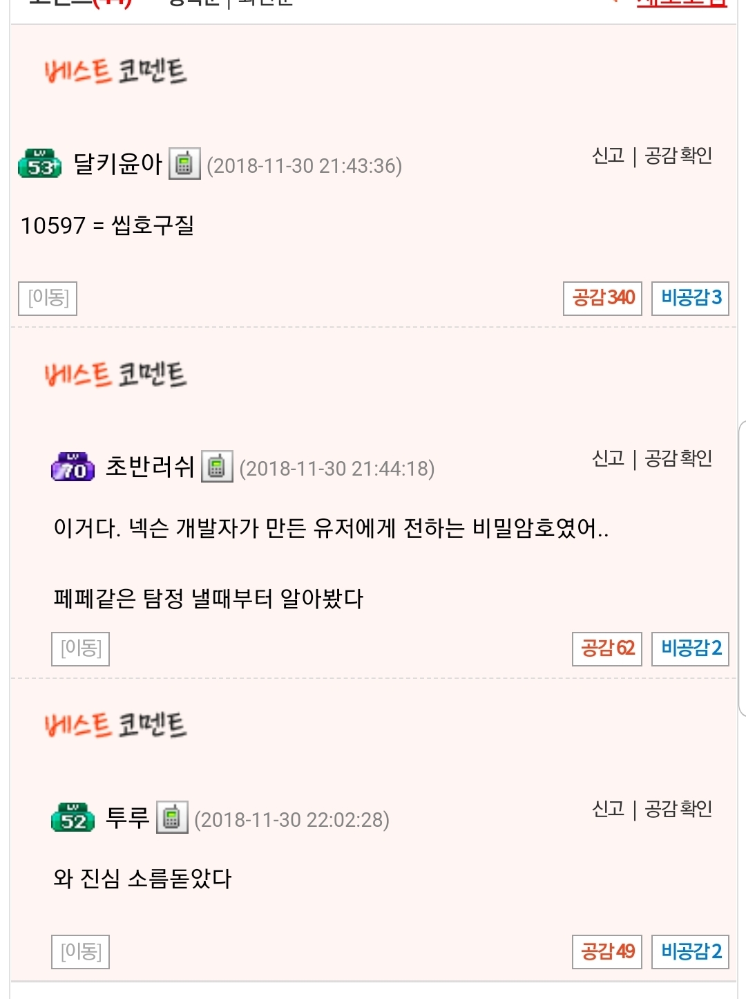 작성자벚꽃스파이크 작성시간 21.02.23 댓글들봤는데 아무숫자 넣은거, 이벤트시스템 몰랐던 운영자가 임의로 적은거 아닐듯 ㅋㅋㅋㅋ 나머지 3개는 다 10으로 떨어지는데 저것만 7로 끝난다? 말도안되지 찐맞을듯 ㅋㅋㅋ