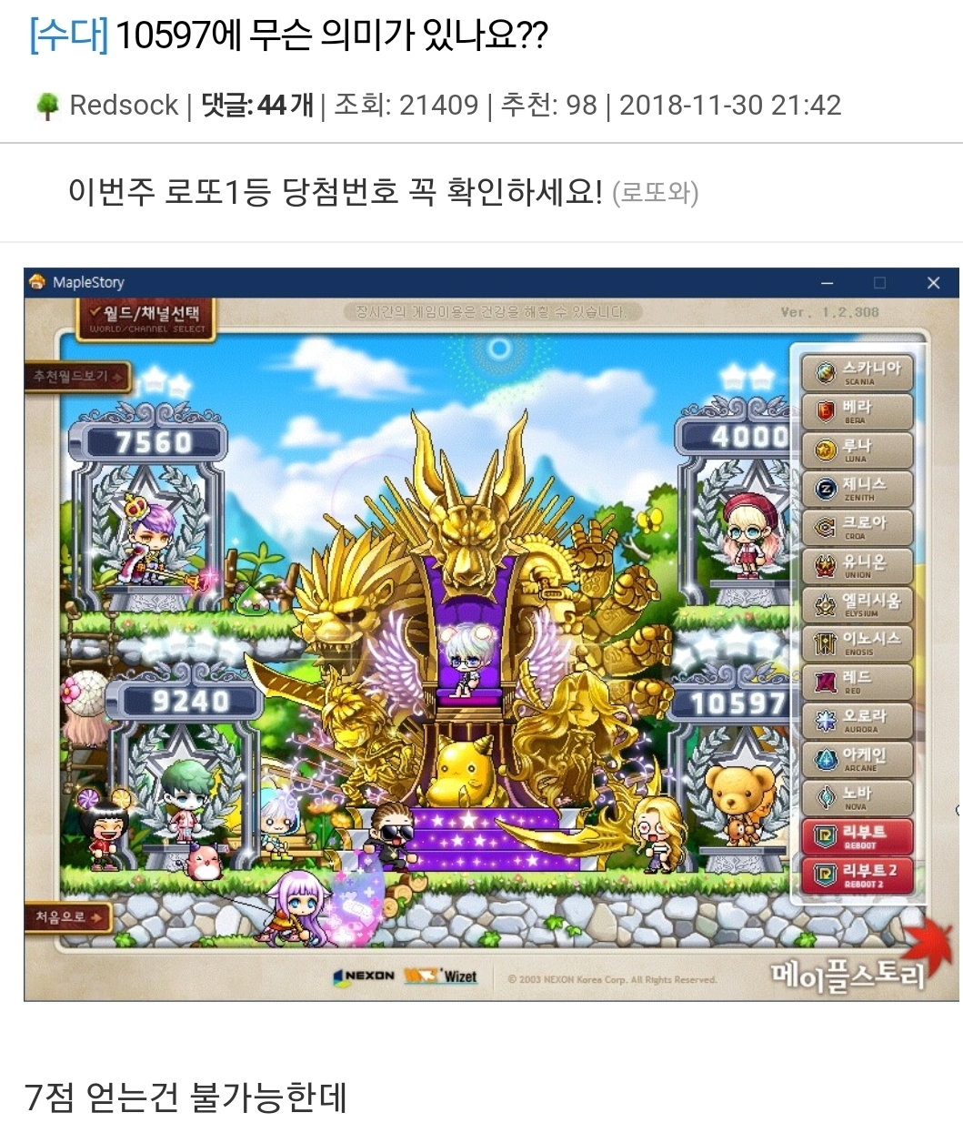 메이플 접속 화면에 10597이란 숫자가 표기됨