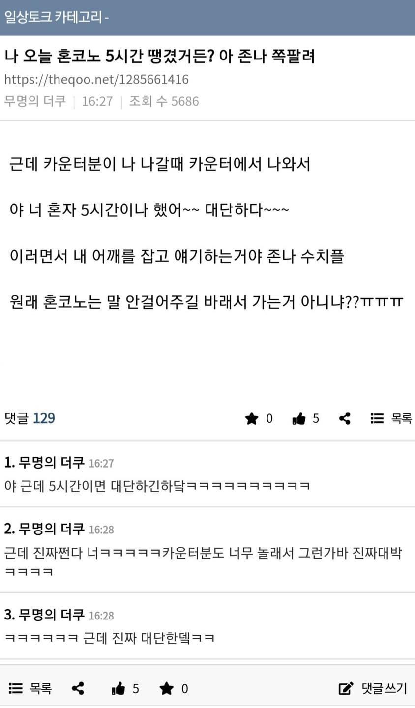 [기타]혼코노 5시간 땡긴사람;;; 작성자유코|작성시간21.02.25|조회수109,520 목록 댓글 99 글자크기 작게가 글자크기 크게가 출처 : 여성시대 유코 다음검색 현재 게시글 추가 기능 열기 북마크 공유하기 신고 센터로 신고 댓글 댓글 99 댓글쓰기 답글쓰기 댓글 리스트 작성자파라라로사 | 작성시간 21.02.26 나도 4시간뷸러.... 작성자터키아보카도베이컨 | 작성시간 21.02.26 체력 무슨 일이야ㅋㅋㅋㅋ 작성자복대지복덕방 | 작성시간 21.02.26 혼코노가 쉬는시간 없어서 더힘든데 대단.. 작성자wtqdakzp | 작성시간 21.02.26 목 괜찮냐궄ㅋㅋㅋㅋ 작성자부케랄로스 | 작성시간 21.02.26 콘서트를 두탕 뛰었네.. 댓글 전체보기