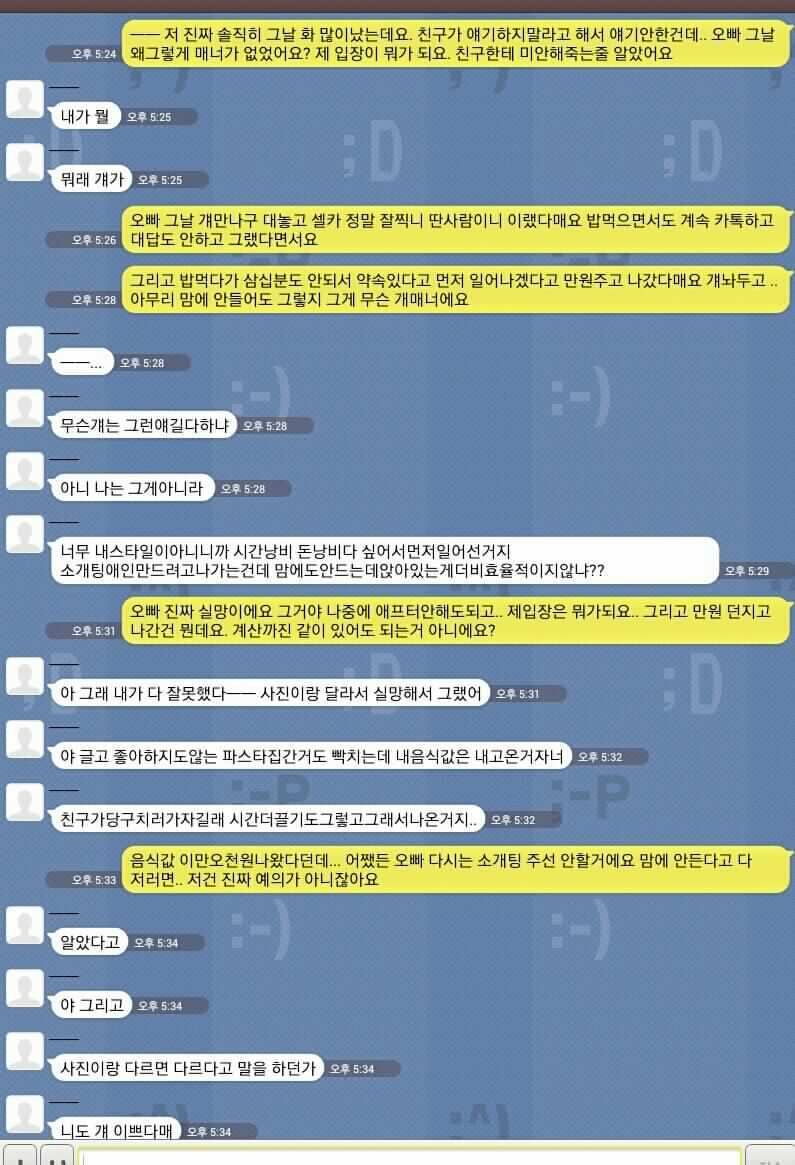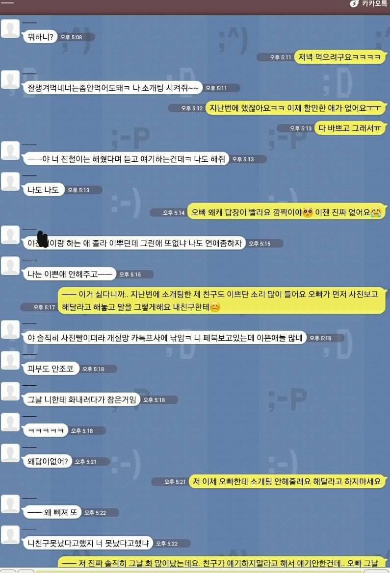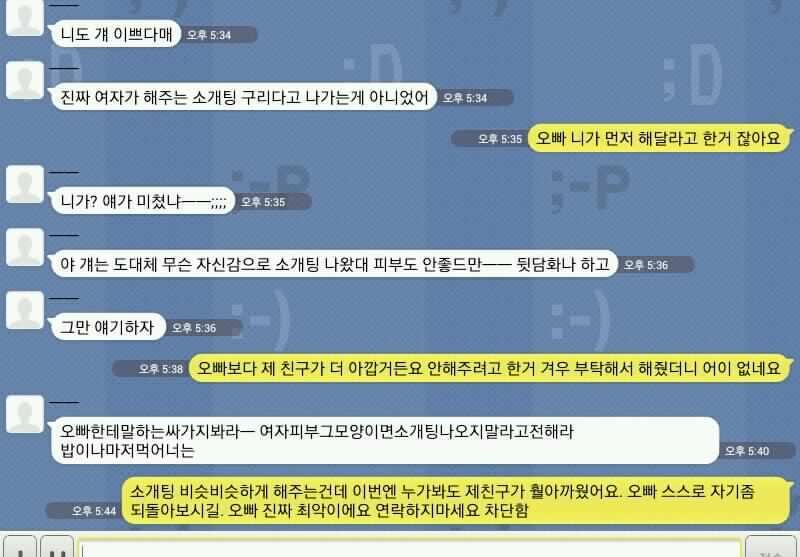 [스크랩] [씹빨쌔끼뜰]소개팅은 매너있게 작성자내가니가니가내가|작성시간13.01.07|조회수8,277 목록 댓글 39 글자크기 작게가 글자크기 크게가 정말 소개팅 시켜준 걸 고맙게 생각하지는 못할 망정.. 이러지는 맙시다 .. 회원비방,성 차별, 욕, 혐오, 음란물, 상업적 광고 등 링크를 포함하여, 사진 및 글은 금지이며 활동중지되실 수 있습니다. 자동으로 소리가 재생되는 글은 반드시 머릿말 설정해주세요 다음검색 스크랩 원문 : 한류열풍 사랑 현재 게시글 추가 기능 열기 북마크 공유하기 신고 센터로 신고 댓글 댓글 39 댓글쓰기 답글쓰기 댓글 리스트 작성자헤더 | 작성시간 13.01.07 여자애 말 차분히 잘했네 미친새끼 작성자재현아사랑해 | 작성시간 13.01.07 븡신색기..ㅉㅉ 작성자최다니엘여자친구 | 작성시간 13.01.07 미친놈.. 작성자블링블링BLBL | 작성시간 13.01.08 미친.. 작성자미스테리아이디 | 작성시간 13.01.08 뭔가.. 저런 남자 있을법함 주변만 봐도 뭐... 댓글 전체보기