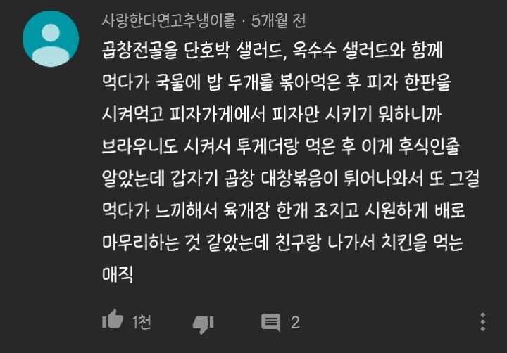 썸네일엔 곱창전골과 샐러드뿐