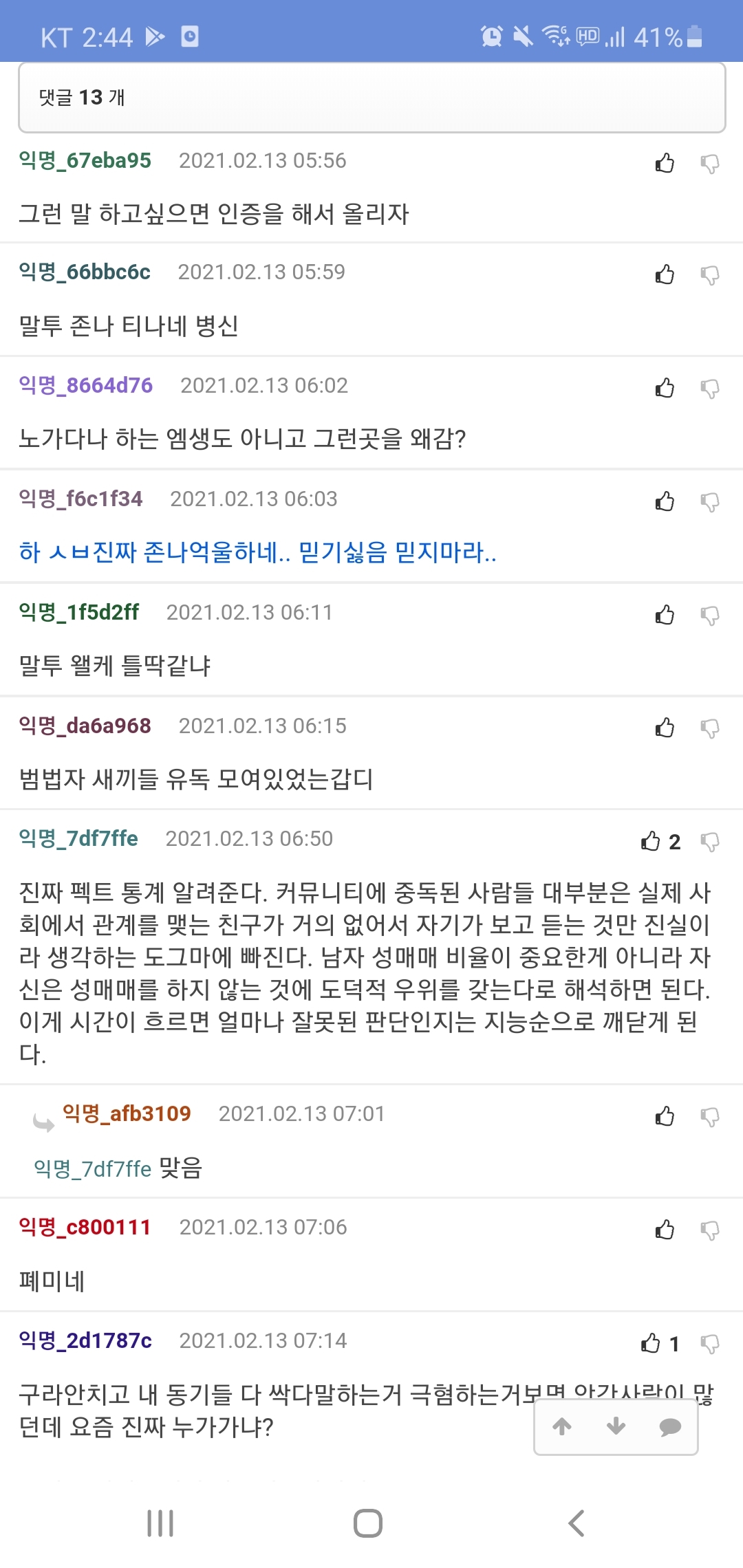작성자우리앳기최고야 작성시간 21.03.13 존재하지도 않는 알페스세력(?)에 게거품 물면서 정작 지들은 아무렇지도 않게 불법성매매 하는것들.