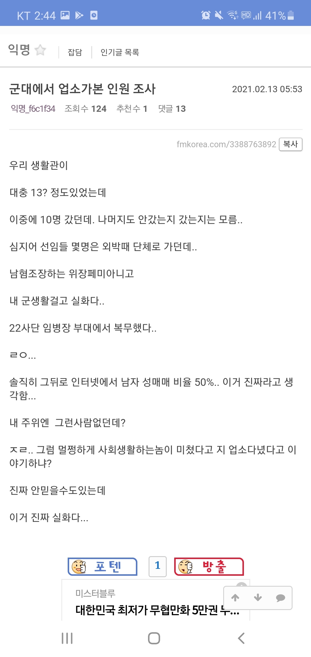 본문이 팩트이고 아니고를 떠나서 댓글반응 보면 다들