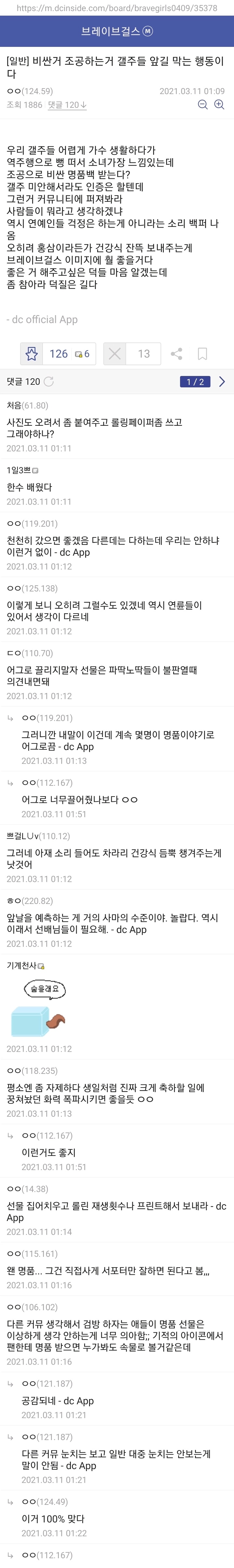 비싼거 조공하는게 브레이브걸스 앞길 막는 일이라고 함
