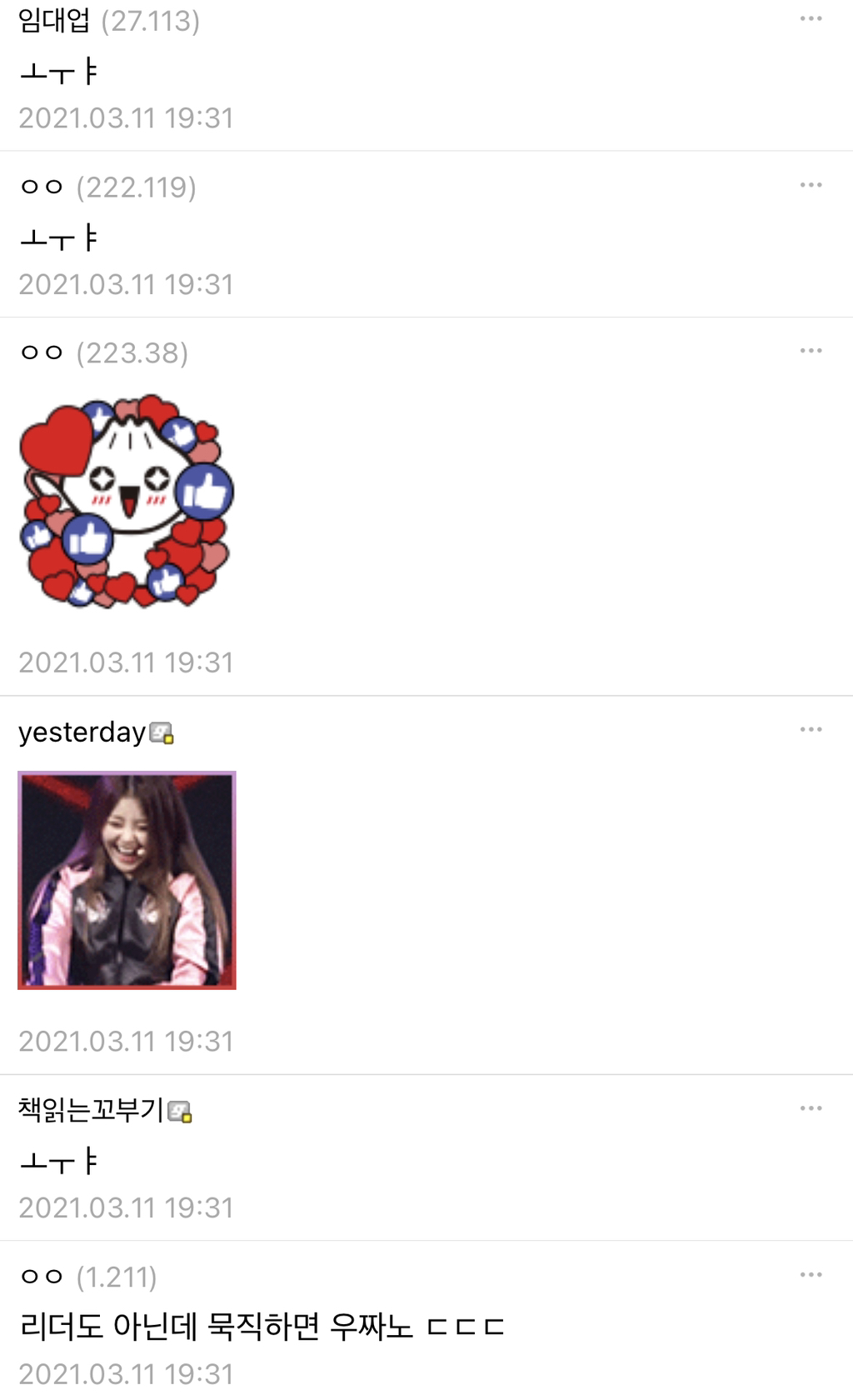작성자삼뎝살먹고싳다 작성시간 21.03.15 토악질나온다