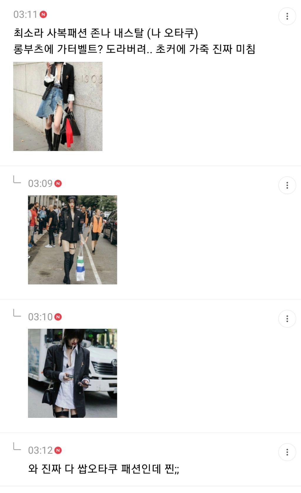 답댓글 작성자누누누까 작성시간 21.05.09 근데 솔까 오타쿠픽 패션도 해가 갈수록 조금씩 달라지는데 업데이트 되는 오타쿠패션도 다 취향임 ㅋㅋㅋㅋㅋㅋㅋㅋㅋㅋㅋㅋㅋ 디질때까지 오타쿠인가봐ㅠ