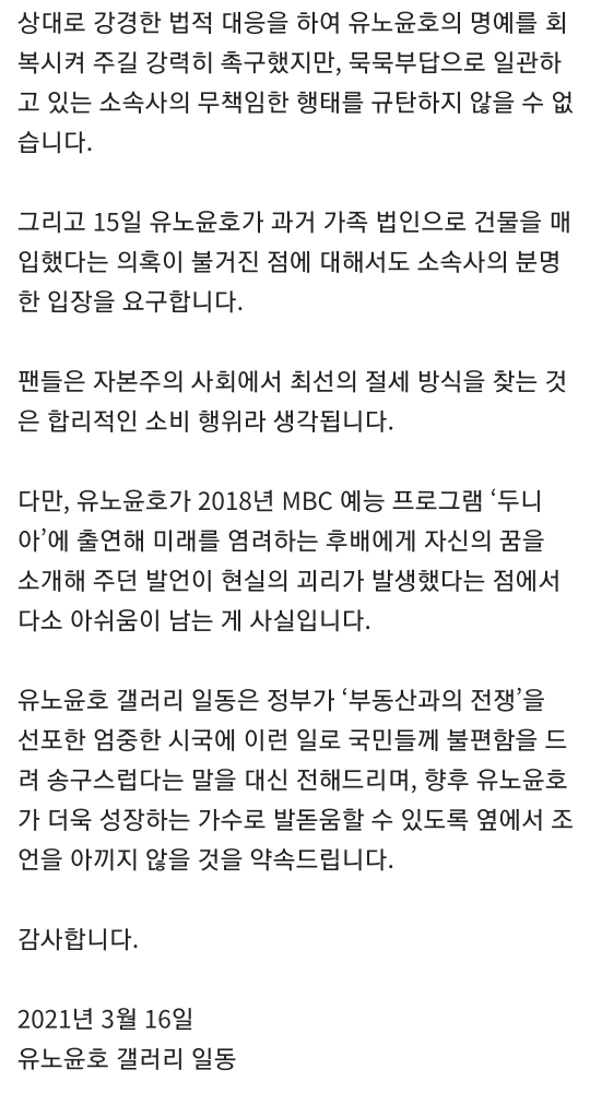 작성자김시래 작성시간 21.03.16 국민들께 불편함을 드려 대신 송구스럽대 ㅋㅋㅋㅋㅋ저거 쓴 사람중에 건물주 몇이나 있을까 개웃겨 증말..