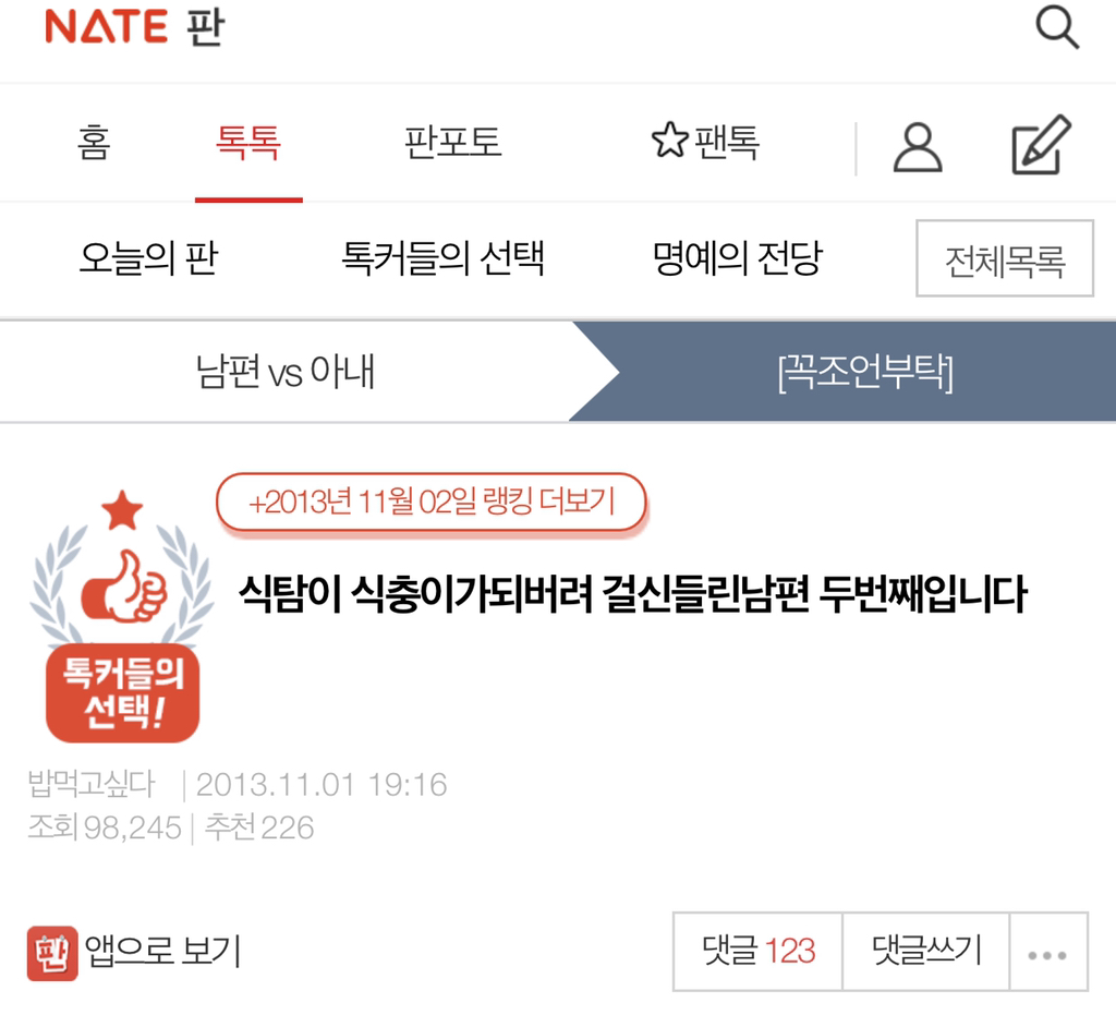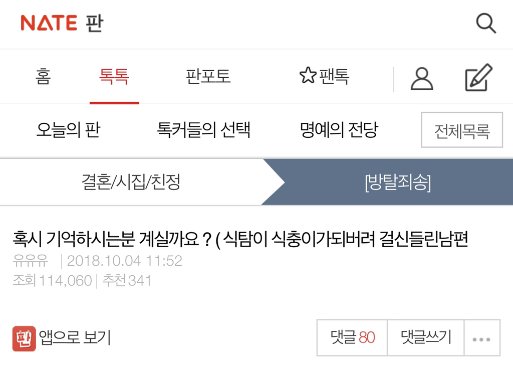 제목그대로 남편인지 이게 식충인지 거렁뱅이인지 모를 인간때문에 글을쓰게되었습니다