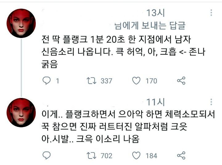 작성자뚱인대여 작성시간 21.03.21 아 ㅋㅋㅋㅋㅋㅋㅋㅋㅋㅋㅋㅋㅋㅋㅋㅋㅋㅋㅋㅋ 진짜 허리랑 배랑 아프면서 크흡.. 흐억 소리 나온다 ㅋㅋㅋ