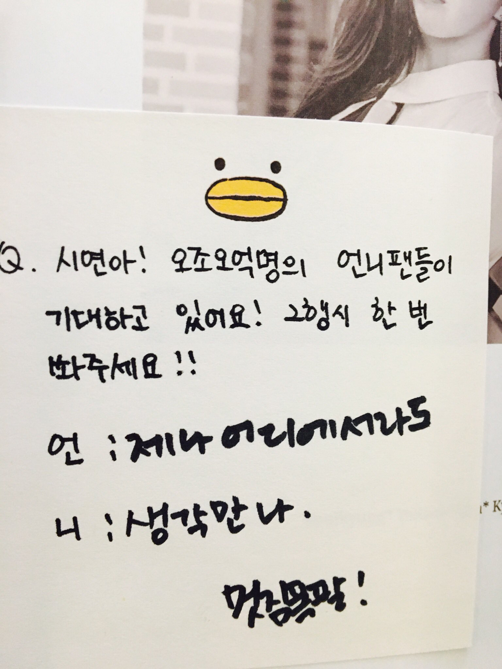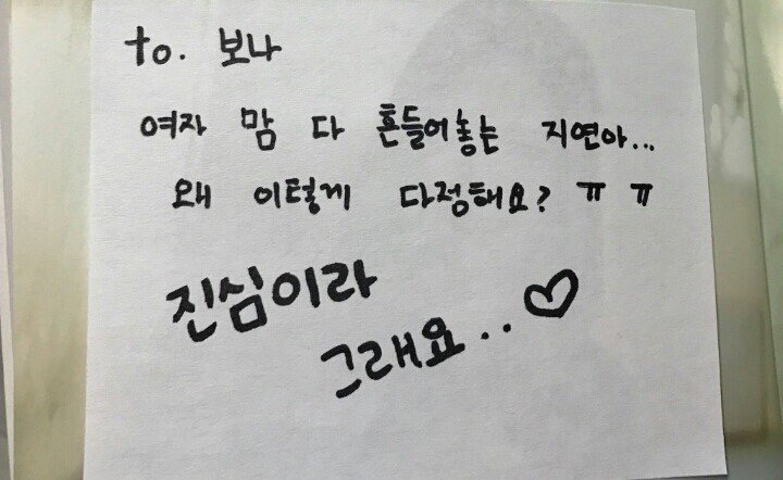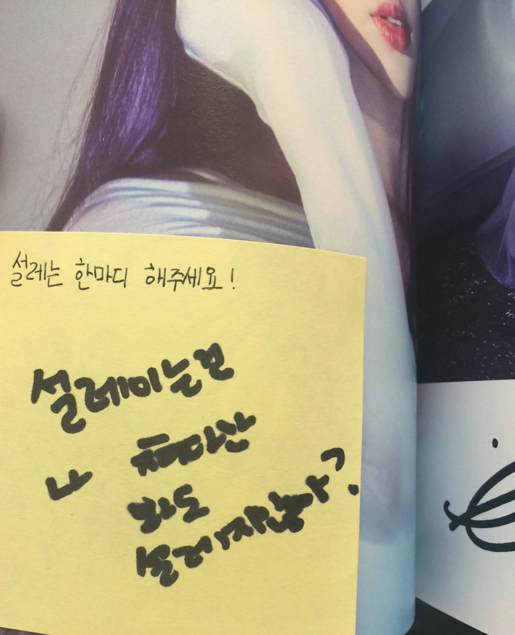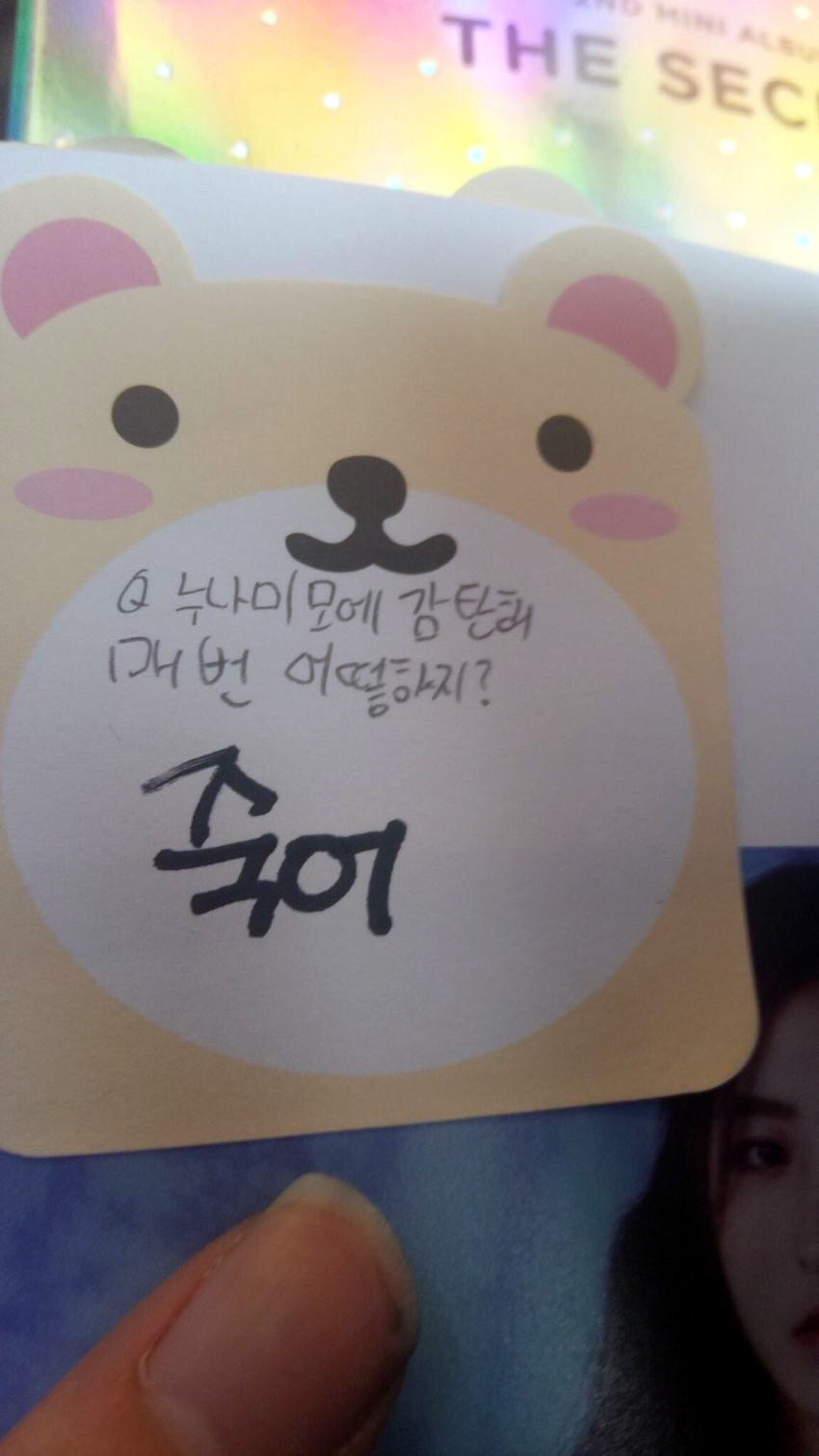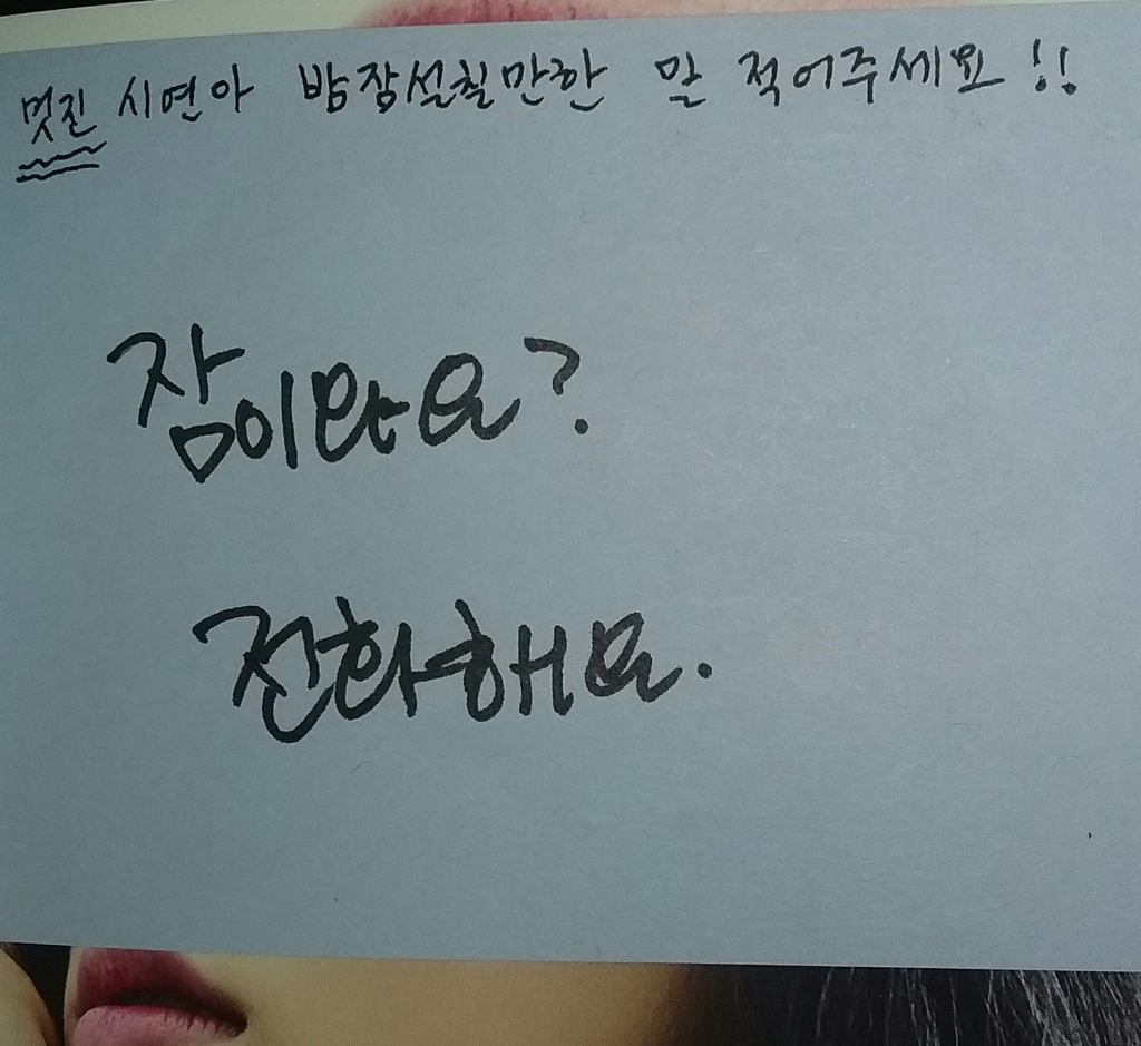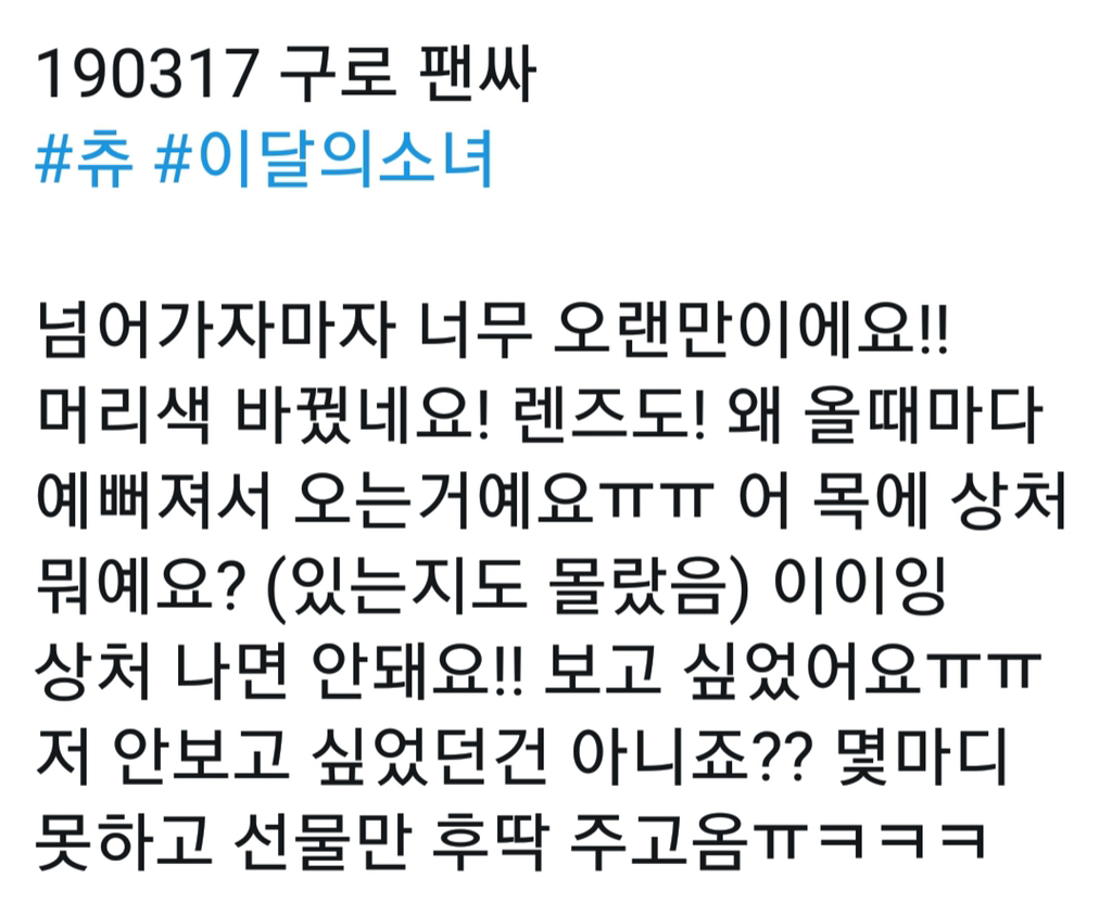 [스크랩] [흥미돋]여자 아이돌 팬싸 후기 모음 작성자셜록쓰 나 네티인디|작성시간21.03.21|조회수9,602 목록 댓글 6 글자크기 작게가 글자크기 크게가 출처 : 여성시대 명륜진샤갈비참고로 팬성 같을까 봐 사진 굳이 안 넣을게프리스틴 시연👇우주소녀 루다👇루다 확실한지는 모르겠다 이건이달의 소녀 고원 👇이달의 소녀 츄 👇우주소녀 보나 👇우주소녀 은서 👇솔직히 진심이었다 마지막은++ 더 찾아보니까 마지막은 남덕이 저래 써달라해서 써준거래 다음검색 스크랩 원문 : *여성시대* 차분한 20대들의 알흠다운 공간 현재 게시글 추가 기능 열기 북마크 공유하기 신고 센터로 신고 댓글 댓글 6 댓글쓰기 답글쓰기 댓글 리스트 작성자조져버려 | 작성시간 21.03.21 마지막 포스트잇ㅋㅋㅋㄱㅋ 작성자왔다장보리 | 작성시간 21.03.21 보나씨 나이모르지만 언니라고 부를게 어쨌든 언니야 나책임져 작성자love youuuuuu | 작성시간 21.03.21 ㅋㅋㅋ아존나웃긴다 죽어 작성자식탐강쥐 | 작성시간 21.03.21 마지막 손톱 ㅅㅂ.... 작성자화지남 | 작성시간 21.03.21 마지막뭐야 ㅋㅋㅋㅋㅋㅋㅋㅋㅋㅋㅋㅋㅋ 댓글 전체보기