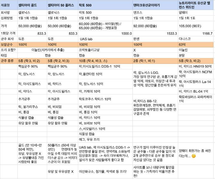 ✳ 정리한 유산균 제품들✳